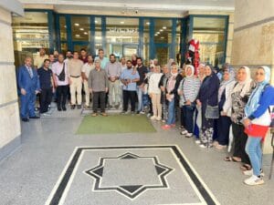 وتوافد العاملون على مقار اللجان الانتخابية منذ الصباح الباكر، في مشهد يجسد الانتماء الوطني والوعي السياسي بأهمية المرحلة، مؤكدين أن المشاركة في العملية الانتخابية واجب وطني ومسؤولية تجاه الوطن، فيما اشرف علي توافد العاملونعلى مقار اللجان الانتخابية، الدكتور تامر حلمي مدير عام المستشفى، والدكتور حسين نور المدير الفني، وم. اشرف العالم مدير الهندسية، و محمود المغربي رئيس اللجنة النقابية و احمد ابراهيم الامين العام وأعضاء هيئة المكتب التنفيذي للنقابة